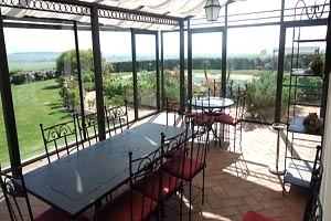The elegant villa is located on a hill in Valdichiana. Valdichiana is a wide valley between Arezzo and Siena characterized by hills covered with vineyards and wide pastures. The renowned Chianina cow is bred in this area.